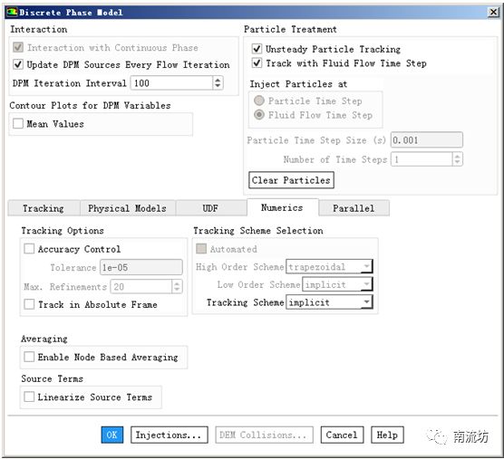 在Discrete Phase Model对话框中,单击OK按钮确认并关闭对话框。