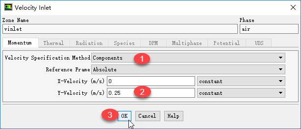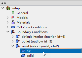 双击模型树节点Boundary Conditions > vinlet > air,弹出边界条件设置对话框