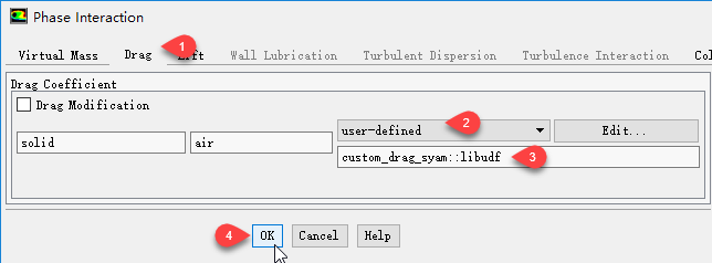 采用修正的Drag模型。本案例也可以使用Wen-Yu模型。