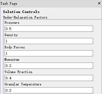 选择模型树节点Solution > Controls,右侧面板中设置亚松弛因子