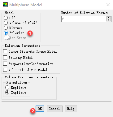 弹出的对话框中选择Eulerain,其他参数保持默认设置,点击OK按钮关闭对话框
