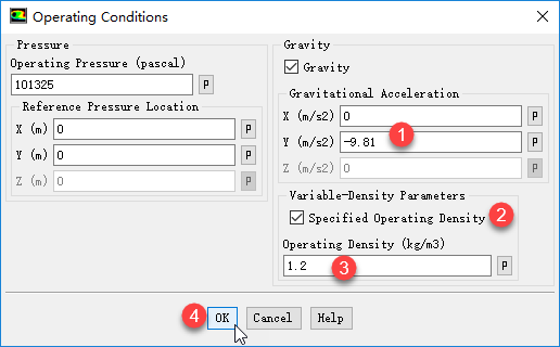 选择模型树节点Boundary Conditions,选择右侧面板中按钮Operating Conditions