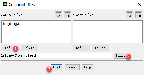 点击Add按钮添加UDF源文件bp_drag.c