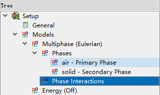 双击模型树节点Models > Multiphase > Phase Interactions,弹出相间相互作用设置对话框