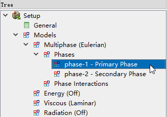 双击模型树节点Models > Multiphase > Phase > phase-1-Primary Phase,弹出相设置对话框