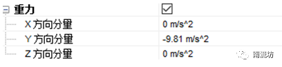 对于自然对流的问题,需要将重力效应考虑在内,则选中重力复选框,同时三维中显示重力的方向,如果与实际的方向不一致,通过改变相应的X、Y、Z分量来定义重力的加速度矢量。