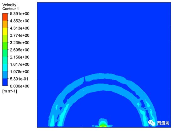 (6)创建云图“Vec”,在云图设定面板Geometry(几何)选项卡中Locations选择Plane 1,Variable选择Velocity,单击Apply按钮创建速度云图。