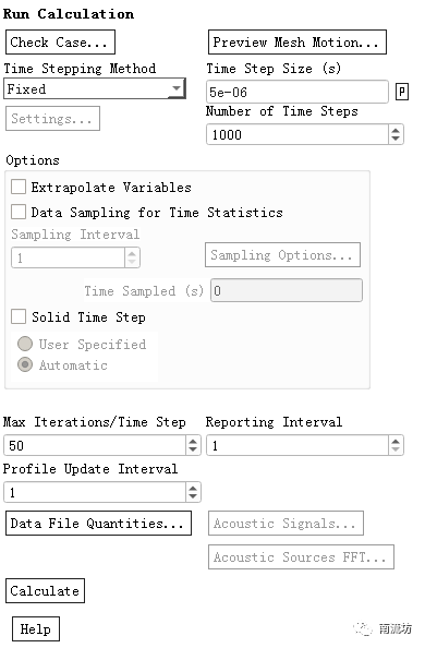 在Time Step Size中输入5e-06,在Number of Time Steps中输入1000,单击Calculate开始计算。