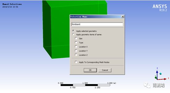 (4)右键模型外部几何体,在弹出的快捷菜单中选择Create Named Selection,弹出的Selection Name对话框,输入名称Ambient,单击OK按钮确认。