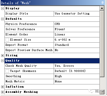 (8)设置网格尺寸为0.06m。在Quality中,Smoothing选择High。