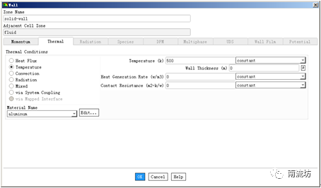 在Thermal选项卡中,Thermal Conditions选择Temperature,Temperature中输入500,单击OK按钮确认退出。