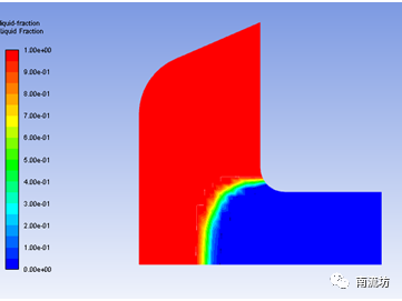 Contous of选择Solidification/Melting和Liquid Fraction,在Options中选择Filled,单击Display按钮,显示云图。