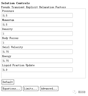 (3)在松弛因子控制面板中,Liquid Fraction Update中填入0.1。