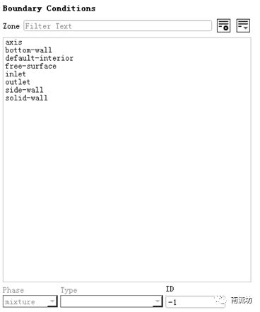 (3)单击主菜单中Setting Up Physics→Zones→Boundaries按钮启动边界条件设置面板。