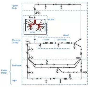人体循环系统中的大部分都可以被简化为一种集成参数网络(LPN)以建立适当的边界条件。此外,这种简化将减少进行模拟的计算时间,这样就可测试更多的手术方式。