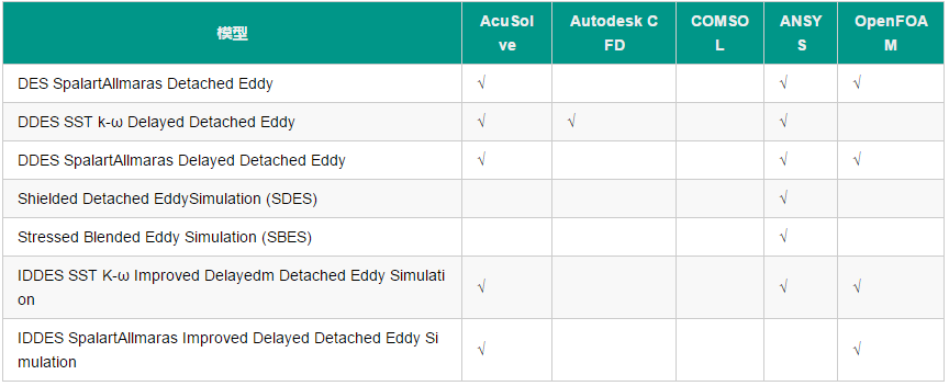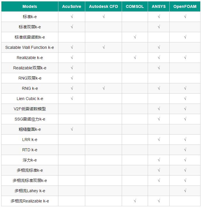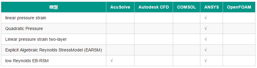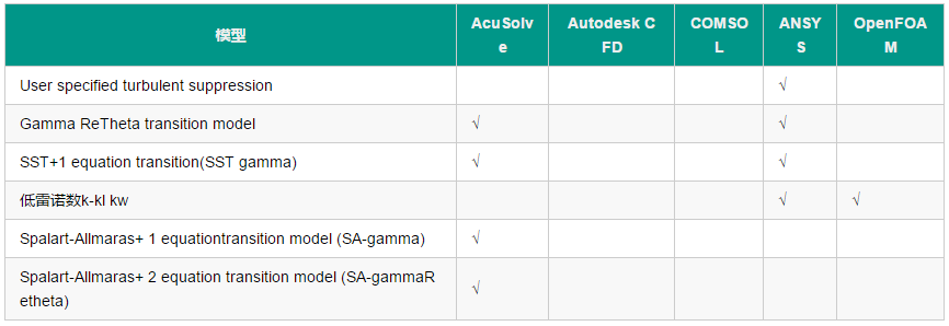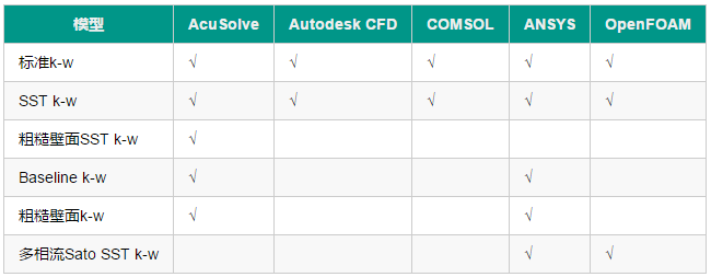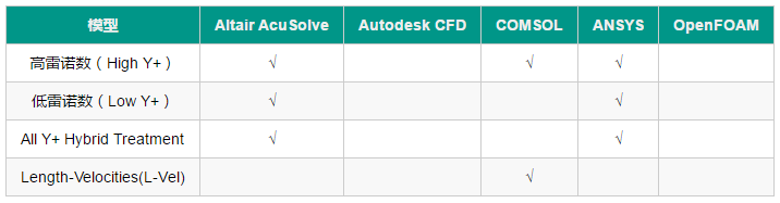 关于Wall Treatment Model在各类CFD软件中的存在情况,如下表所示