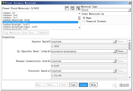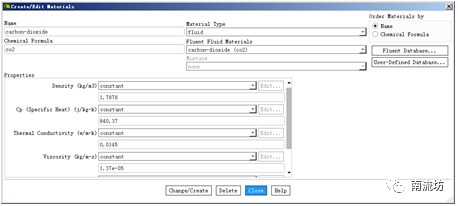 在Create/Edit Materials(材料)对话框中,将CO2的Cp选择为constant,单击Change/Create按钮。