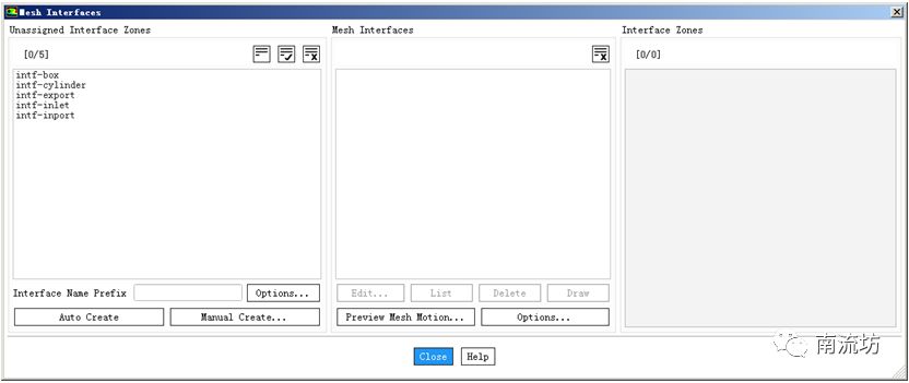 (1)单击主菜单中Setting Up Domain→Interface→Mesh按钮,弹出Mesh Interfaces(网格分界面)面板。