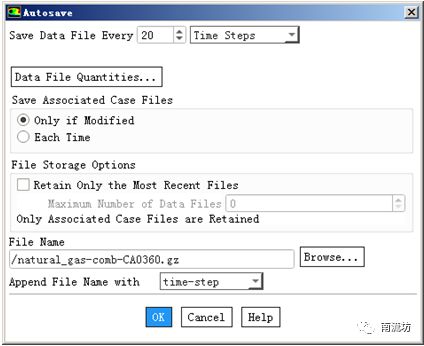 (1)单击主菜单中Solving→Activities→Autosave按钮,弹出Autosave(自动保存)对话框,设置Save Data File Every为20。