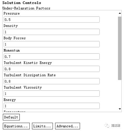 (2)单击主菜单中Solving→Controls→Controls按钮,弹出Solution Controls(松弛因子控制)面板。在Under-Relaxation Factor中Pressure中填入0.5。