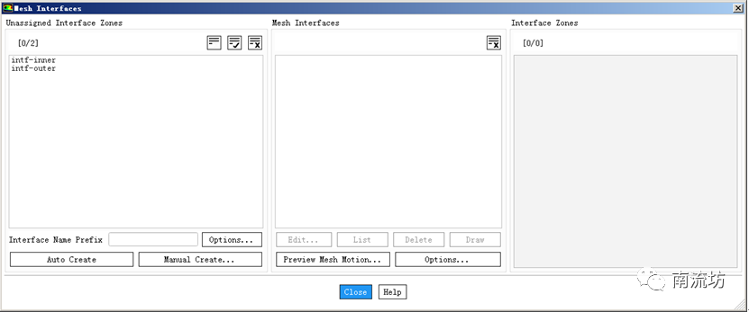 (1)单击主菜单中Setting Up Domain→Interface→Mesh按钮,弹出Mesh Interfaces(网格分界面)面板。