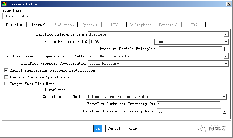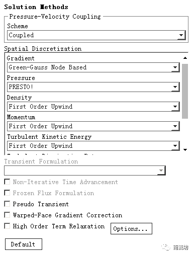 本次计算为稳定的、湍流的、可压缩的,基于压力的耦合解算器流动。