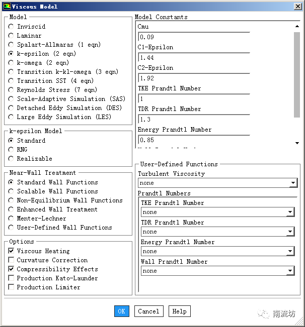 选择为标准k-epsilon湍流模型