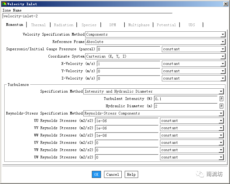 (1)入口速度边界条件