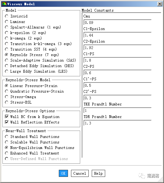 选择为雷诺应力湍流模型