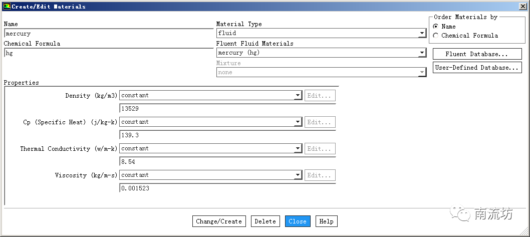 物质属性:密度为13529kg/m3,粘度为0.001523kg/m-s,比热139.3J/kg-K,导热系数8.54 W/m-K