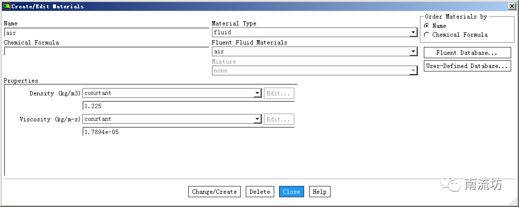 计算物质设置为空气,设置它的密度等参数