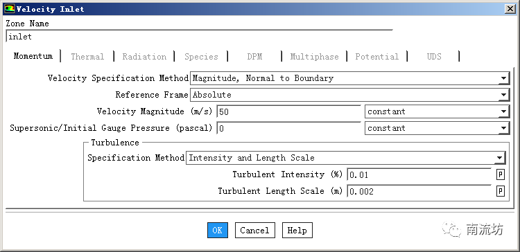 (1)入口设置速度边界