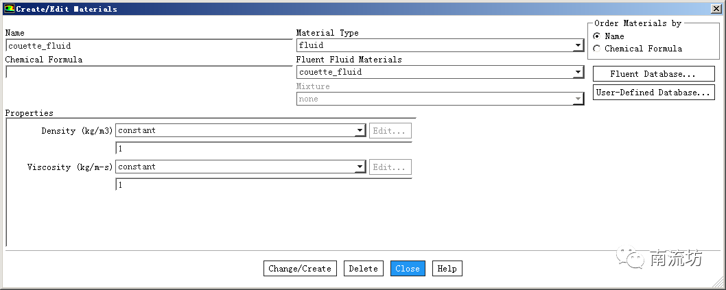 物质属性:密度为1kg/m3,粘度为1kg/m-s