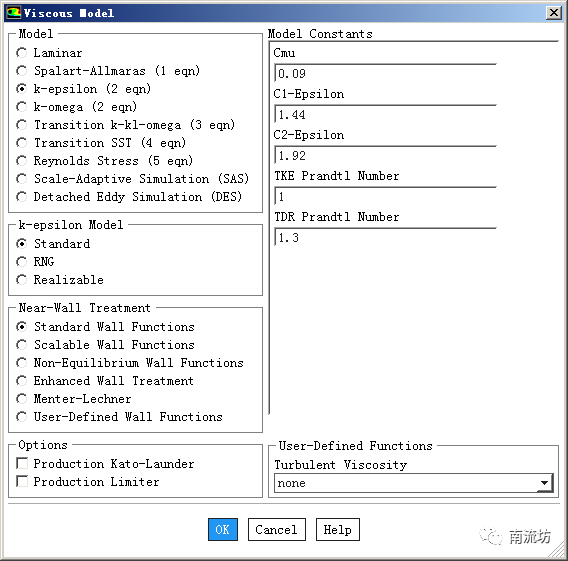 选择标准k-epsilon模型