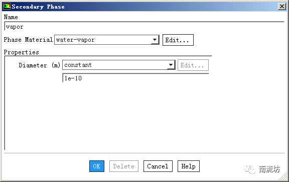 物质属性:水密度为1000kg/m3,粘度为0.001kg/m-s;水蒸汽密度为0.02558kg/m3,粘度为1.26e-6kg/m-s