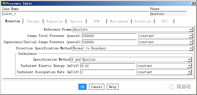 (1)设置压力入口边界条件