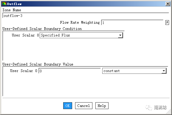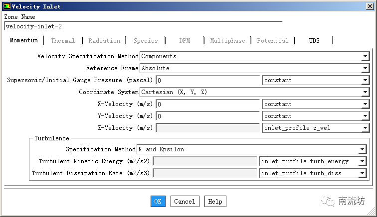 设置入口流速,这里流速值和湍流参数有profile文件读入