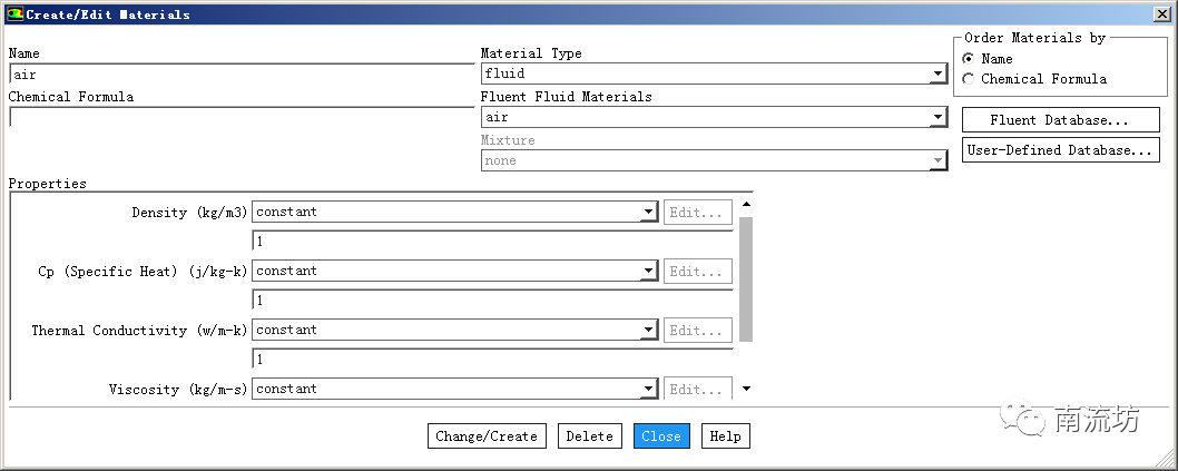 物质属性:物质密度1kg/m3,比热1J/kg-K,导热系数1W/m-K,粘度300kg/m-s