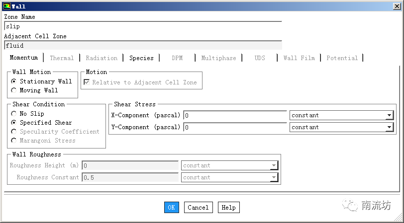 管道上部壁面剪切应力为0,下部壁面为无滑移边界