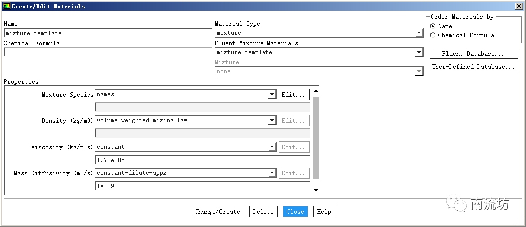 物质属性:清水密度1015 kg/m3,盐水密度1030kg/m3,混合物动力扩散系数1e-9m2/s