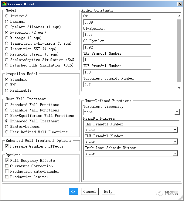 湍流模型选择标准k-epsilon模型,考虑浮力影响