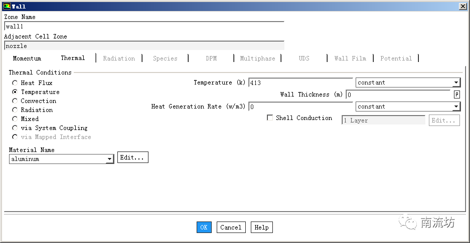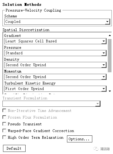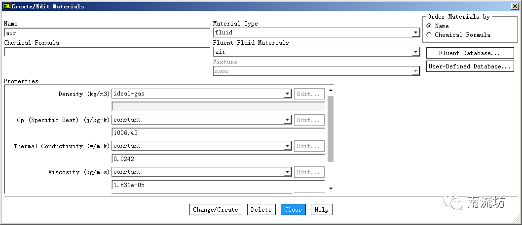 计算域内流体物质为空气,设置它的密度和粘性参数