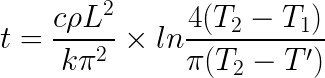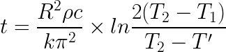 把最简温度函数变形,再把a换成各常数,就能解出当肉片中心温度达到T’时所需的时间t了:
