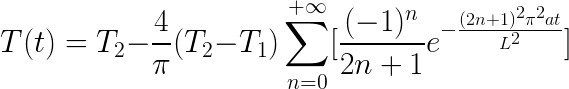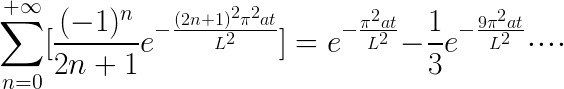 好,我们拿到了第一个处理这个函数的锦囊,那就是将x=0代入,只研究温度最低部位(正中间)的温度T与时间t的关系。