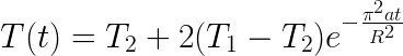 假设放入肉片的温度为T1,火锅汤的温度保持T2不变,得到这个方程的解是: