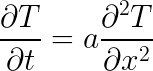 这是一个偏微分方程,其中T(x,t)是偏微分方程的解,从直观上很容易想到,它是肉片温度T关于位置x和放入时间t的二元函数。a则是一个常数,它与肉的热导率k、比热容c和密度ρ有关,具体来说是: