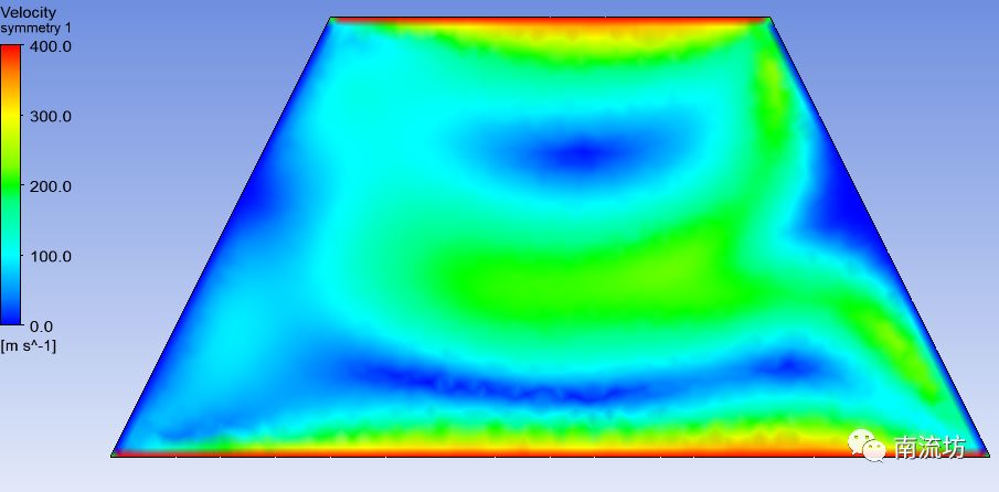 边界条件:顶部和底部移动流速为400m/s,侧壁面不动