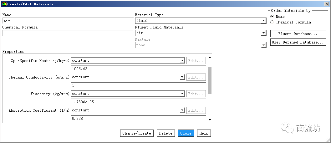 材料属性:Thermal Conductivity = 1W/m-K,Absorption Coefficient =0.228/m