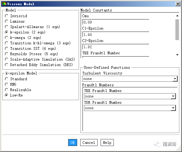 选择低雷诺数k-e湍流模型