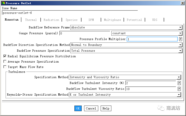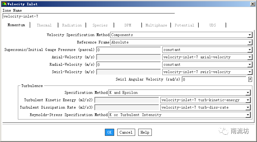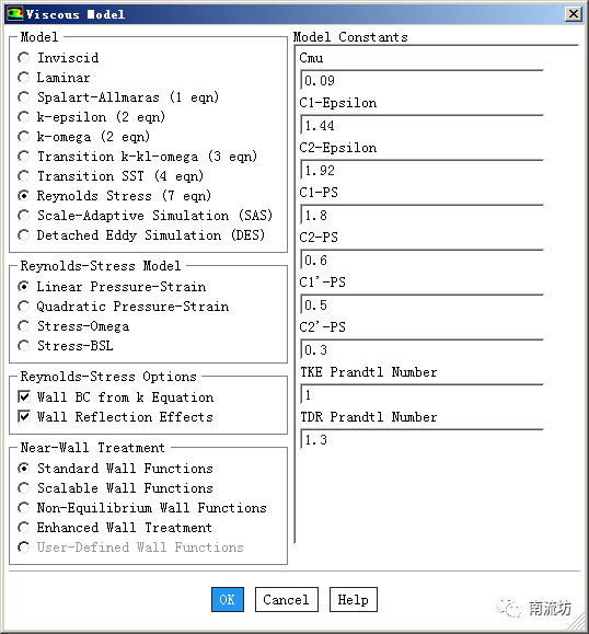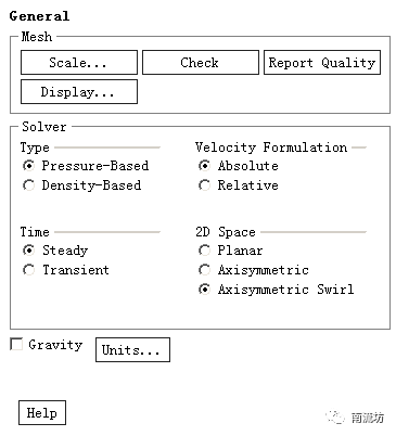 本次计算问稳态计算,选用雷诺应力湍流模型。选择axisysmmetric swirl计算。